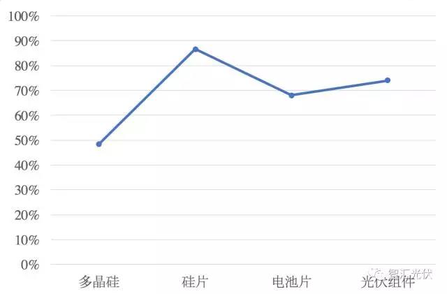 從上圖可以看出,除了多晶硅以外,2017年硅片、電池片、光伏組件環(huán)節(jié)的產(chǎn)量,68%~87%來自中國。