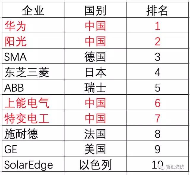 根據(jù)IHS的統(tǒng)計(jì)數(shù)據(jù),2016年,中國的逆變器前企業(yè)華為、陽光銷量分別位于全球第一、第二。全世界出貨量前10名中,中國企業(yè)占據(jù)4席。