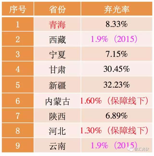 表:2016年全國各地的光伏限電率
