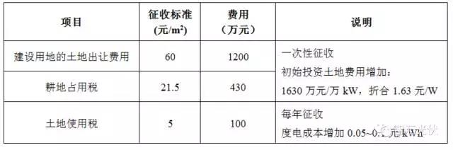 表:一般光伏項(xiàng)目的土地成本