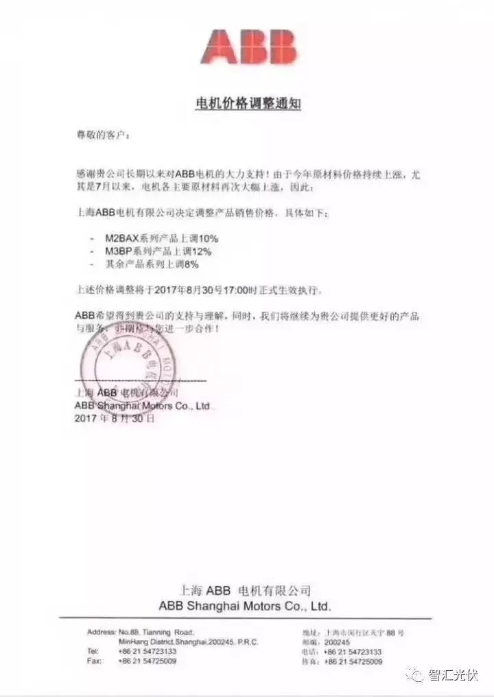 ABB電氣的調(diào)價(jià)公函