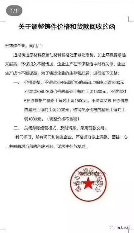 龍灣區(qū)鑄造協(xié)會(huì)的調(diào)價(jià)公函