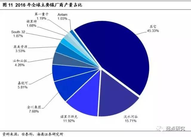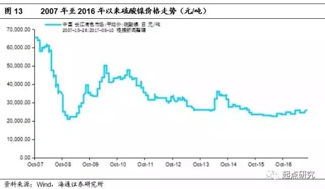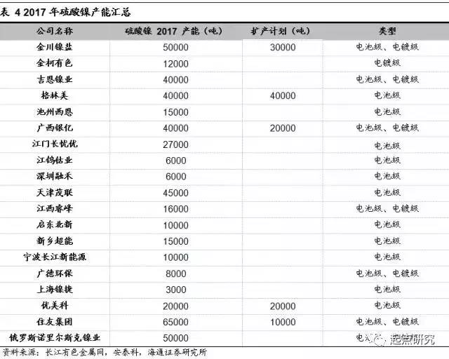 目前國內(nèi)的硫酸鎳產(chǎn)能大致為34.3萬噸左右,由于動(dòng)力電池和新能源汽車的火熱,金川鎳鹽、格林美和廣西銀億此后還有9萬噸的硫酸鎳擴(kuò)產(chǎn)計(jì)劃。