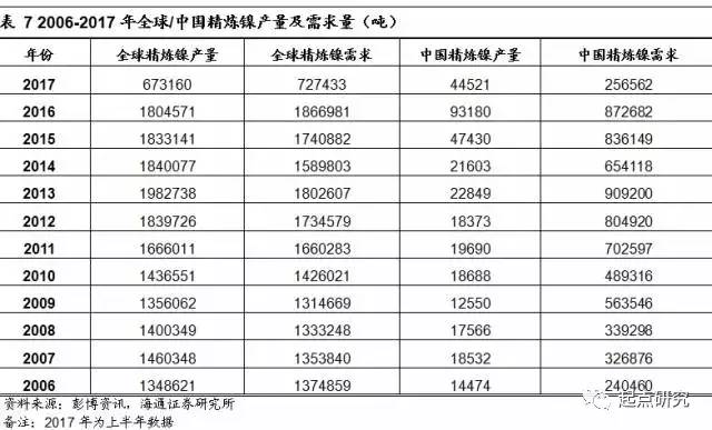 從2006至2017年的精煉鎳的供需平衡中,在2007-2015的這個(gè)時(shí)間段,全球精煉鎳始終存在供大于求的現(xiàn)象,導(dǎo)致了鎳價(jià)格的長期性下跌,現(xiàn)在鎳依然處于一個(gè)長期性的價(jià)格低位。在2016年以及2017年的上半年,供需平衡發(fā)生了反轉(zhuǎn),2017年上半年,全球精煉鎳的缺口已達(dá)50000噸,鎳價(jià)格得到支撐。而中國對鎳產(chǎn)品很大程度上依賴進(jìn)口,國內(nèi)產(chǎn)量遠(yuǎn)低于需求量,國內(nèi)鎳價(jià)格很大程度上取決于國際鎳價(jià)。
