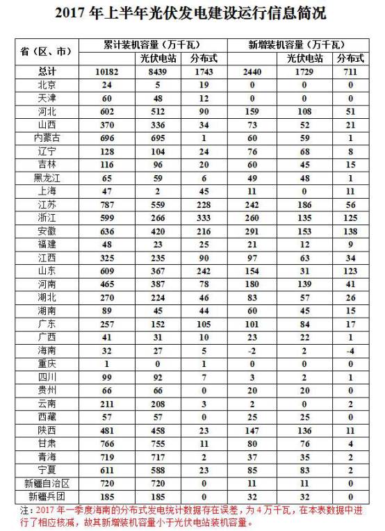 2017年上半年我國(guó)各地光伏累計(jì)裝機(jī)及新增裝機(jī)一覽