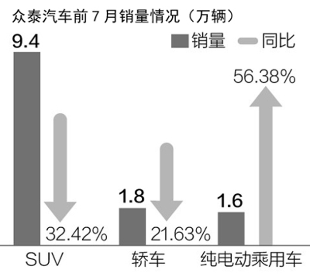 公開資料顯示,從2008年開始,眾泰便著手布局新能源汽車業(yè)務(wù),成立了新能源汽車研究院。與在傳統(tǒng)車領(lǐng)域飽受“皮尺部”調(diào)侃的境況不同,近年來,眾泰的新能源汽車銷量穩(wěn)步增長,累計實現(xiàn)銷量超過7萬輛,占全國新能源純電動汽車總體銷量的18%。今年1~7月,在SUV和轎車銷量同比大幅下滑的情況下,眾泰純電動乘用車卻同比增長56.38%至1.6萬輛,在中國新能源汽車市場中位于銷量前列。