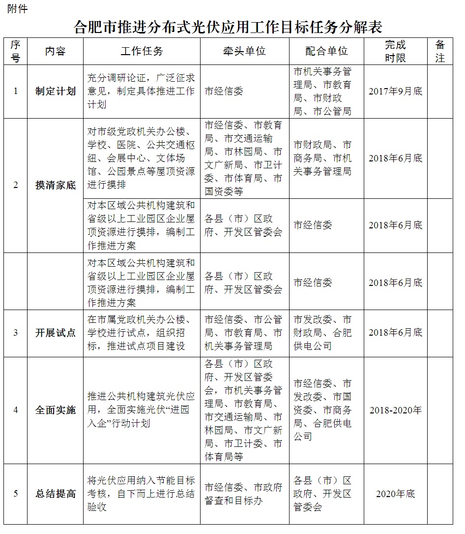 附件:合肥市推進(jìn)分布式光伏應(yīng)用工作目標(biāo)任務(wù)分解表