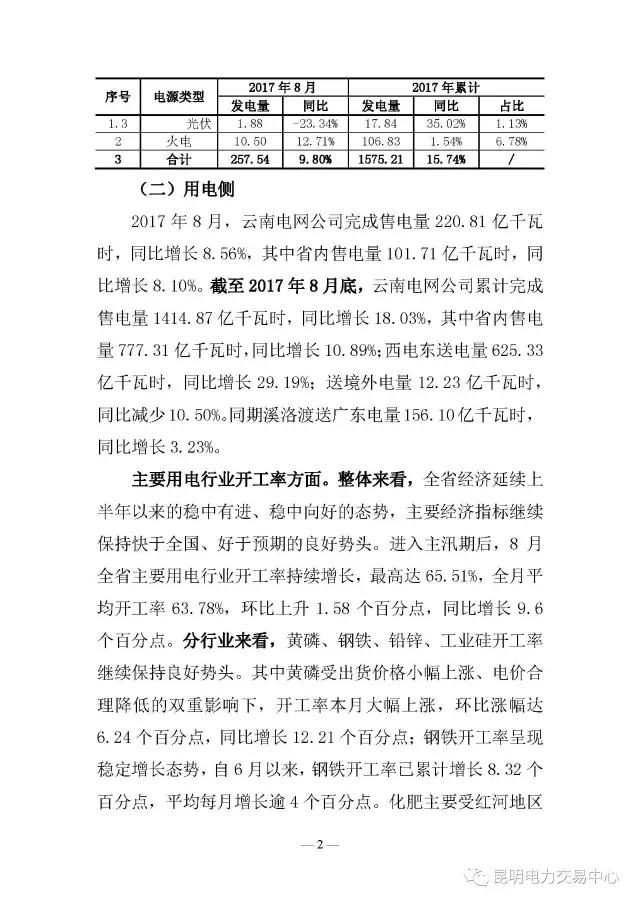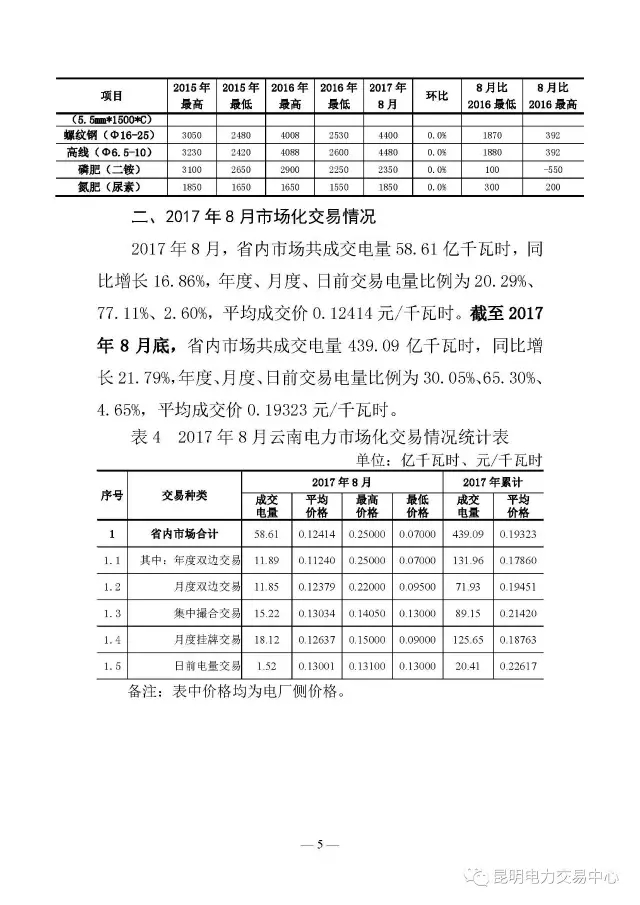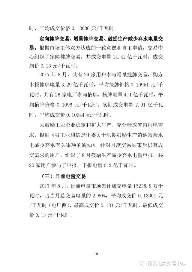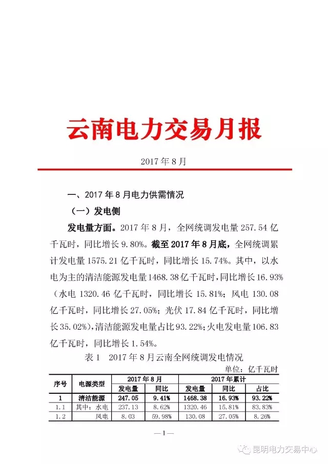 云南電力交易8月月報(bào)