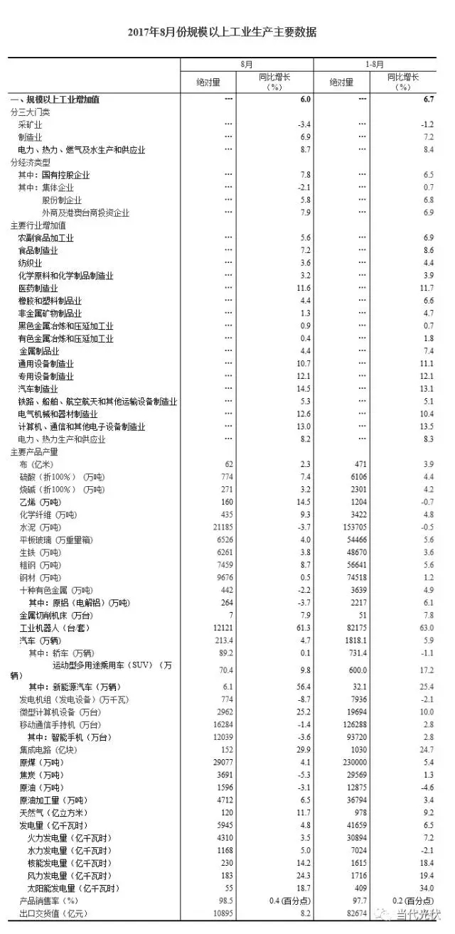 1-8月份,發(fā)電量41659.4億千瓦時,同比增長6.5%,增速比1-7月份回落0.3個百分點。其中,火電發(fā)電量30894億千瓦時,同比增長7.2%;水電發(fā)電量7024億千瓦時,同比降低2.1%;核能發(fā)電量1615億千瓦時,同比增長18.4%;風力發(fā)電量1716億千瓦時,同比增長19.4%;太陽能發(fā)電量409億千瓦時,同比增長34.0%。