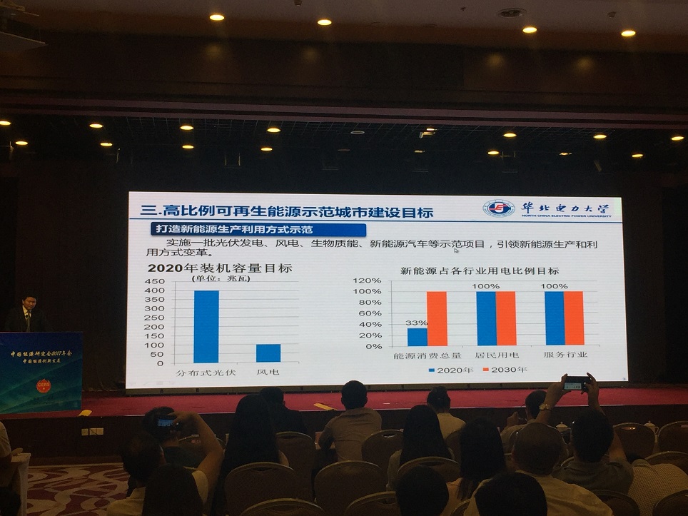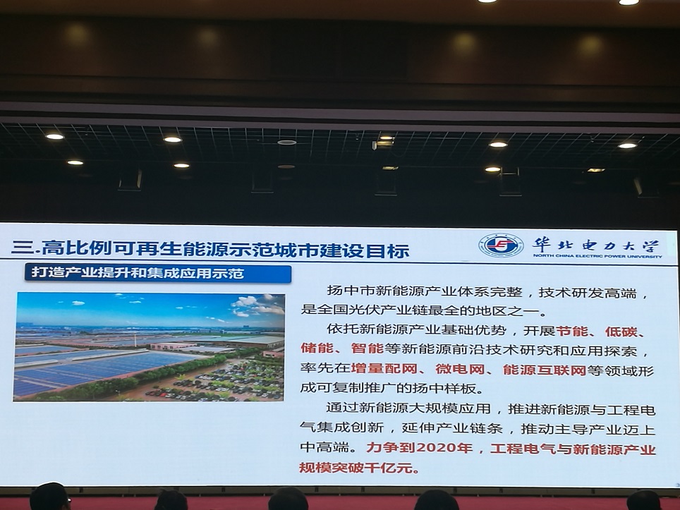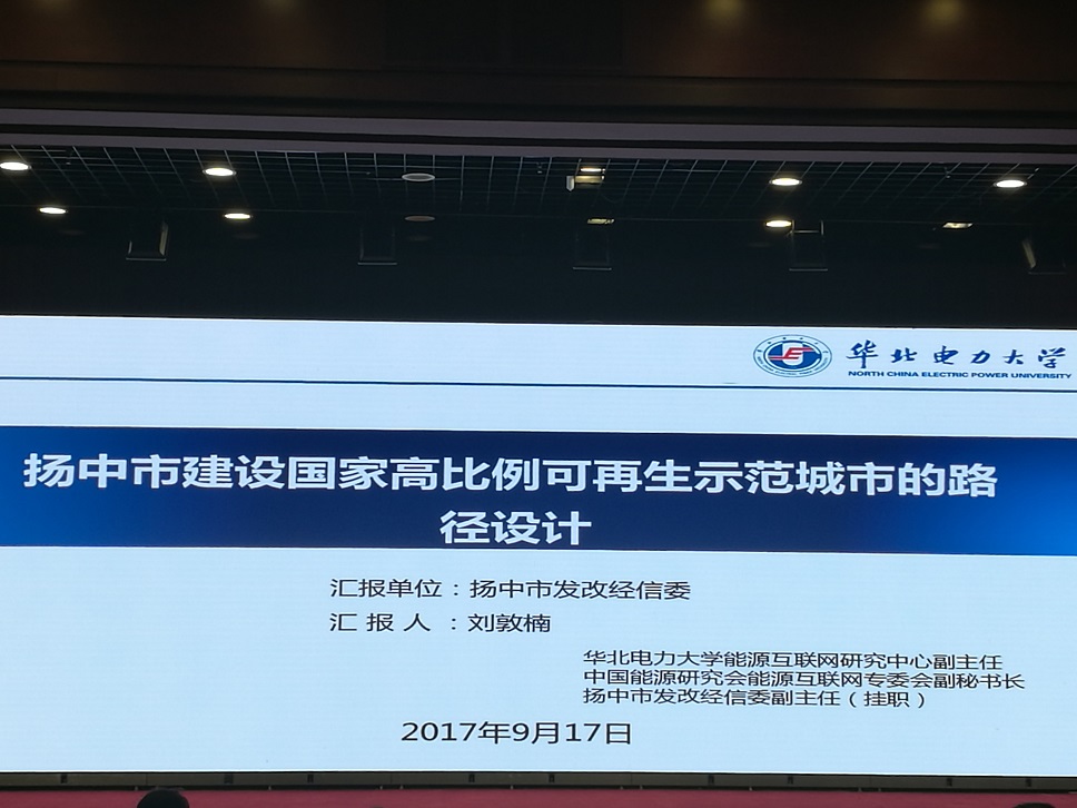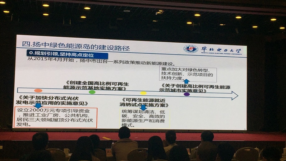 中國儲能網訊:華北電力大學能源互聯(lián)網研究中心副主任、揚中市發(fā)改經信委副主任劉敦楠介紹了揚中市建設國家高比例可再生示范城市的路徑設計。