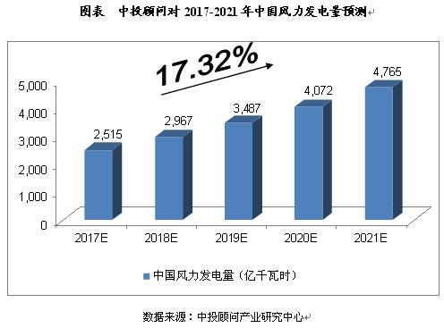 中投顧問對2017-2021年中國風力發(fā)電量預(yù)測