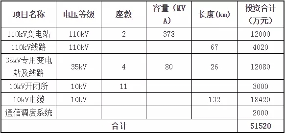 天頂拓展區(qū)北區(qū)電力設(shè)施規(guī)劃合計投資5.15億元。新建2座110kV變電站,投資1.2億元;新建110kV架空線路67公里,投資4020萬元;新建10kV開閉所11座,投資3000萬元;新建35kV專用變電站投資及電纜進線投資約為1.21億元;新建10kV線路132公里,投資1.84億元;新建通信調(diào)度及智能化部分2000萬元。各項投資如下表所示。