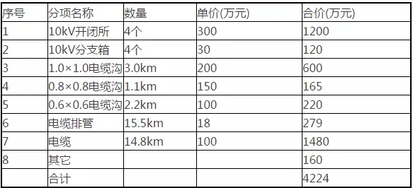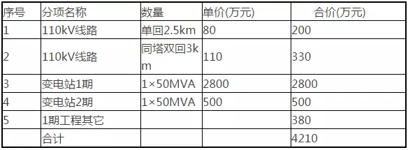 渭沱拓展區(qū)遠期投資估算總計4.08億元。新建110kV變電站3座,投資1.2億元;新建110kV架空線路104公里,投資0.78億元;新建10kV開閉所35座,投資1.05億元;新建10kV電纜線路105公里,投資1.05億元。各項投資詳見下表。