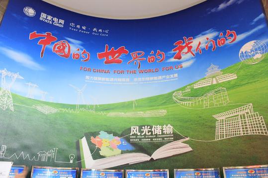 在展示廳三樓的瞭望臺上,我們終于看到了示范工程的風光景象。瞭望臺的西側(cè),望不到邊際的蔚藍色光伏海洋沖擊著我們的眼球。海洋中起伏著單晶硅、多晶硅、斜單軸硅板等各種光伏板。“海洋”的盡頭,一個個高大的風機立在遠處的高山上,風機上的葉片隨風轉(zhuǎn)動。瞭望臺的東側(cè),風光儲的二期擴建工程正在加緊施工建設(shè)中。據(jù)國網(wǎng)新源風光儲輸有限公司宣傳負責人梁立新介紹,今年,張家口入夏以來雨水頗多,但是二期工程的建設(shè)人員積極克服陰晴不定的氣候條件,發(fā)揚勇于拼搏、敢于勝利的戰(zhàn)斗精神,日推進施工方量屢創(chuàng)新高,在積極確保電站安全、穩(wěn)定運行的基礎(chǔ)上,全力推進國家風光儲輸示范工程二期擴建工程各項工作進程。據(jù)悉,在一期示范工程的建設(shè)當中,就涌現(xiàn)了很多值得推送的先進事跡和典型,這些事跡和典型為展示廳上“我們的”這個詞語賦予了新的內(nèi)涵。