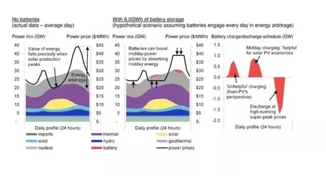 我們通常認(rèn)為,電池與可再生能源之間存在高度共生關(guān)系,即電池將在有可再生能源電力產(chǎn)出的時(shí)段充電,并在其他時(shí)段放電。從多個(gè)層面來說,這種設(shè)計(jì)都非常合理。本質(zhì)而言,電池可通過將低價(jià)值時(shí)段的可再生能源電力產(chǎn)出轉(zhuǎn)移至高價(jià)值時(shí)段,實(shí)現(xiàn)“能源套利”,從而降低電網(wǎng)的短期成本,并為可再生能源項(xiàng)目帶來收益。