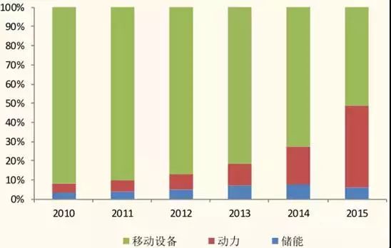 2010~2015年我國鋰電池市場應(yīng)用終端占比情況