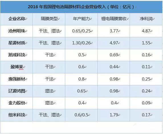 2016年我國鋰電池隔膜企業(yè)利潤平均超過50%