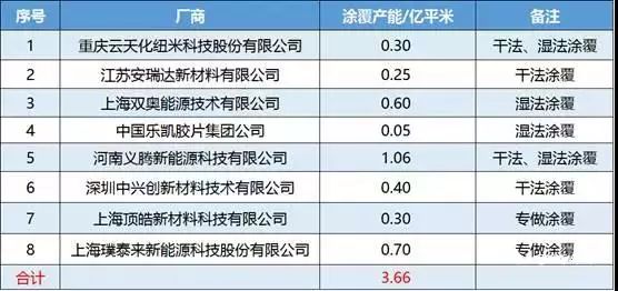 根據(jù)公開數(shù)據(jù)統(tǒng)計(jì),我國目前大約有8家企業(yè)在量產(chǎn)涂覆隔膜,涂覆產(chǎn)能超過3.5億平米。