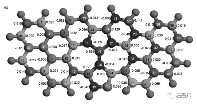 圖9 N摻雜石墨烯的(a)原子電荷密度和(b)自旋密度