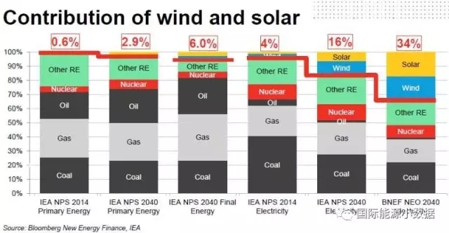 然而,其他機(jī)構(gòu)的預(yù)測(cè)要大大低于BNEF的預(yù)測(cè)。比如國(guó)際能源署(IEA)認(rèn)為2040年的風(fēng)電光伏占總發(fā)電量的比例約為16%,在一次能源消費(fèi)中僅占2.9%。