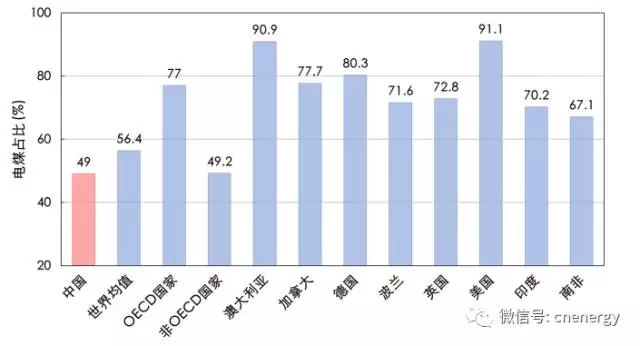 世界部分國(guó)家和地區(qū)電煤比重