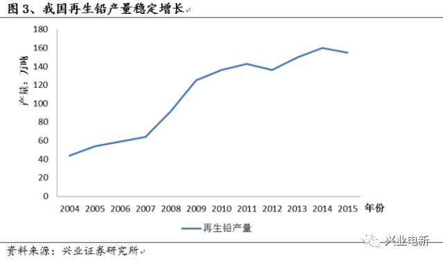 同時,鉛回收利用已經是非常成熟的產業(yè),2014年我國再生鉛產量達到約160萬噸,同比增長6.7%,占鉛產量的38%。隨著鉛回收技術的進一步提升,目前鉛的回收率可以達到98%以上。