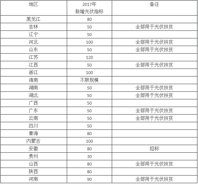 2017年各省新增光伏發(fā)電建設(shè)規(guī)模分配情況