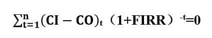 1. 財(cái)務(wù)內(nèi)部收益率(FIRR)系指能使項(xiàng)目計(jì)算期內(nèi)凈現(xiàn)金流量現(xiàn)值等于零時(shí)的折現(xiàn)率,即FIRR作為折現(xiàn)率使下式成立: