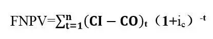 3.財(cái)務(wù)凈現(xiàn)值(FNPV)系指按設(shè)定的折現(xiàn)率(一般采用基準(zhǔn)收益率ic)計(jì)算的項(xiàng)目計(jì)算期內(nèi)凈現(xiàn)金流量的現(xiàn)值之和,可按下式計(jì)算: