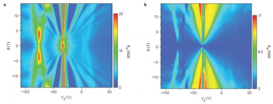 圖5:?jiǎn)螌邮┑膹较螂娮韬突魻栯娮桦S門電壓和磁場(chǎng)的扇形圖。