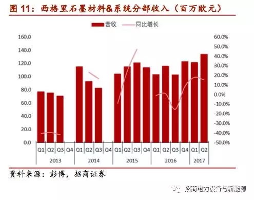 受需求拉動上半年價格上漲,企業(yè)陸續(xù)開工,收入增加:上半年國內(nèi)光伏裝機大超預(yù)期,同時由于“領(lǐng)跑者”等計劃的推動使得單晶占比持續(xù)上升,單晶組件需求增加,推動用于單晶長晶爐的進口等靜壓石墨從去年同期的7-8萬元/噸左右上漲至目前的10-12萬元/噸左右,國內(nèi)外企業(yè)的等靜壓石墨開工率開始提升,如國內(nèi)等靜壓石墨生產(chǎn)企業(yè)成都炭素同比收入大幅增加;德國企業(yè)西格里石墨材料分部收入實現(xiàn)小幅增長,其中來自光伏市場特種石墨的收入從2015年的不到10%上升至2016年的11%。