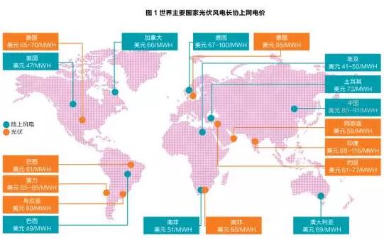 從2015年開始,全球范圍內(nèi)的可再生能源項(xiàng)目,特別是光伏發(fā)電與海上風(fēng)電招標(biāo)的低價(jià)頻出,風(fēng)電光伏低至50美元/千度電的水平,大幅低于了之前的預(yù)期,從而大大激發(fā)了平價(jià)遐想(圖1)。在世界的很多地方,包括南美、中東等非歐美國家,招標(biāo)政策大幅擠壓了生產(chǎn)商的利潤邊際,最終的中標(biāo)價(jià)格都與通常認(rèn)為的煤電與核電的度電成本可比。基于典型項(xiàng)目的長期平準(zhǔn)化成本(LCOE)的測算,通常也會(huì)顯示這一點(diǎn)。2008年算起,光伏的發(fā)電成本下降了80%,而風(fēng)電也有30%以上。