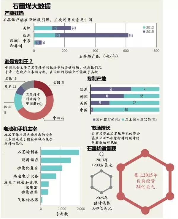 圖2 截止到2015年為止的石墨烯大數(shù)據(jù)(截圖來自《Graphene booms in factories but lacks a killer app》)