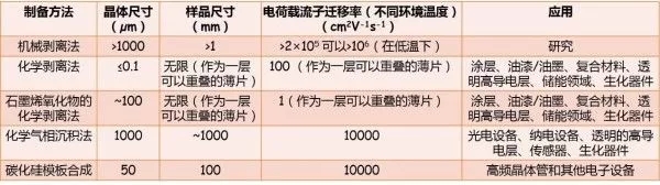 表2 通過不同方法制備石墨烯的簡單物性參數(shù) (來自《A roadmap for graphene》)