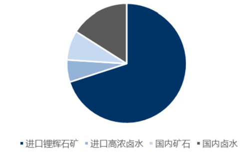 我國是世界第五大鋰資源國,鋰礦資源豐富,主要分布在青海、西藏、新疆、四川、江西等地區(qū),但生產(chǎn)鋰產(chǎn)品的鋰礦主要依賴進口。我國鋰礦資源豐富但鋰礦嚴重依賴進口的原因為:一方面,我國鋰礦資源中鹵水鋰礦占比70%,鹵水鋰礦主要分布在青海和西藏,面臨海拔高、交通不便、鹽湖資源鎂鋰比高等問題,鹵水鋰礦生產(chǎn)技術瓶頸明顯,產(chǎn)量較小,資源利用率較低;另一方面,我國鋰礦石主要為分布于江西宜春的鋰云母,而鋰輝石占比較低且高級別的儲量極少,但與鋰輝石相比鋰云母在生產(chǎn)鋰產(chǎn)品方面雜質較多、提取成本高。因此目前成熟的礦石提鋰技術還是從鋰輝石提鋰,而國內鋰輝石大量依賴進口。