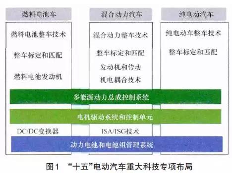 電動汽車重大專項(xiàng)以汽車整車技術(shù)和關(guān)鍵零部件技術(shù)為開發(fā)重點(diǎn),采取整車牽頭、零部件配合、產(chǎn)學(xué)研相結(jié)合的模式,根據(jù)整車產(chǎn)品特征屬性和關(guān)鍵核心系統(tǒng)共享屬性,建立了電動汽車“三縱三橫”的矩陣式研發(fā)布局。