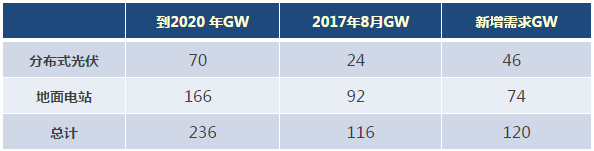 截止到8月底,中國(guó)歷史累計(jì)光伏裝機(jī)已經(jīng)達(dá)到126GW,提前實(shí)現(xiàn)了十三五105GW的裝機(jī)目標(biāo)。但是,8月份中國(guó)國(guó)家能源局調(diào)整了十三五光伏裝機(jī)規(guī)劃,新增普通電站指標(biāo)為54.5GW,領(lǐng)跑者指標(biāo)每年8GW、四年共32GW,總計(jì)達(dá)86.5GW。預(yù)計(jì)未來(lái)3年,國(guó)內(nèi)每年裝機(jī)容量達(dá)35~40GW。