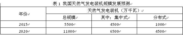 結(jié)合"十三五"期間我國電力發(fā)展供需分析以及未來我國天然氣發(fā)電在我國電力供應(yīng)中的地位,預(yù)測我國天然氣發(fā)電裝機(jī)規(guī)模發(fā)展,如表1所示。
