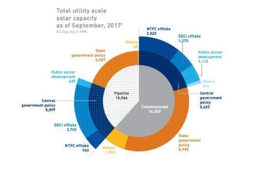 中國儲能網(wǎng)訊:根據(jù)《印度太陽能產(chǎn)業(yè)地圖報告》,截至2017年9月,印度公共事業(yè)規(guī)模太陽能裝機總量達到16.2 GW;過去四個季度印度市場增長尤其迅速-裝機量為7.5GW,較同期增長84%,期間向開發(fā)商分配出10GW太陽能項目。