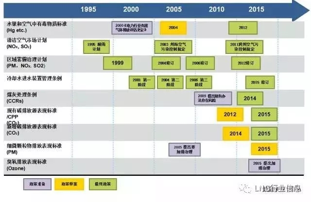 ? 2002年美國氣電裝機增量達到5400萬千瓦,2013年氣電裝機總量達4.25億千瓦,占全國裝機總量的42%,期間政府出臺了大量環(huán)保政策限制電廠污染物排放。