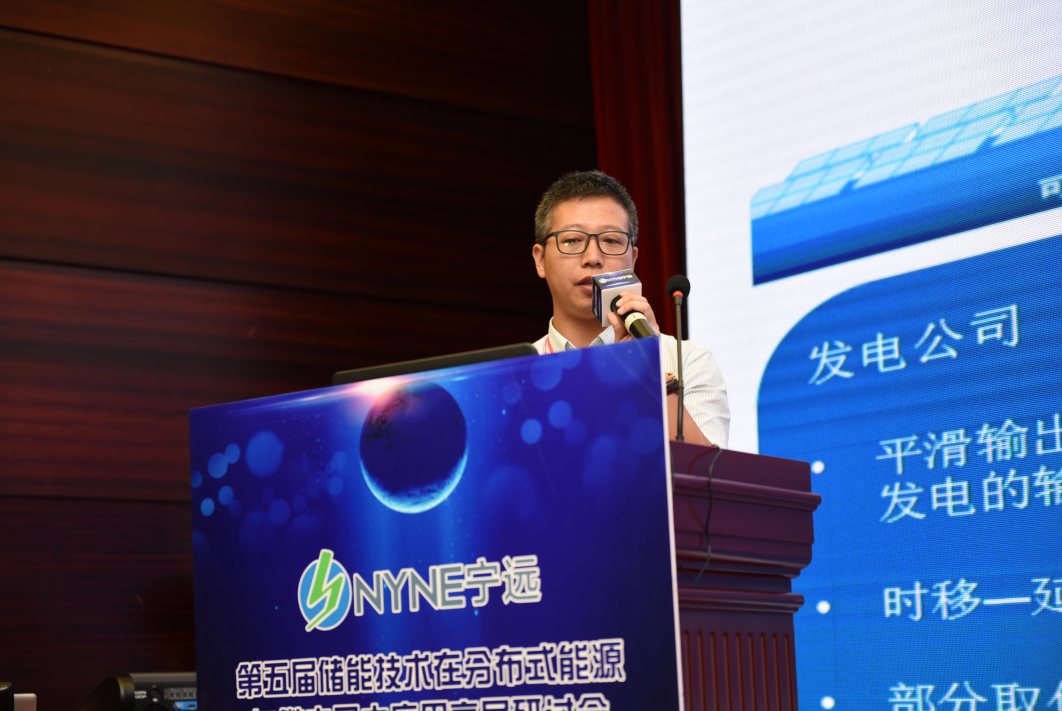 關于電化學儲能在電力系統(tǒng)的應用,剛才科陸的黃總在這邊做了深度的分析,我用四張PPT大概簡單介紹一下。整個發(fā)電的電力系統(tǒng)方面,首先從發(fā)電公司開始,如果和光伏結合,儲能系統(tǒng)的作用最主要作用是平滑輸出,大家都知道光伏是有間歇性的,我們加入儲能能平滑它的輸出,減少對電網(wǎng)有沖擊,變成更加有利的發(fā)電發(fā)展。第二個作用是時移,光伏系統(tǒng)是在6點到下午的6點,這段時間出力,其他時間是不發(fā)電的,所以這時儲能會把整個電站出力時間往前和往后推移,所以整個電站能夠更長時間發(fā)揮它的出力。第三個是取代傳統(tǒng)的化學能源的調(diào)峰電廠。第四是解決新能源限電,我們在西北的光伏電站,很多時候都會限電,比如甘肅那邊限20%多,有些電站可能限到40%-50%,限電的時候沒有辦法輸出,用儲能系統(tǒng)就可以在限制功率的時候,就把多出來的電能存儲到儲能系統(tǒng)里面來,等到?jīng)]有出力或者低功率時給電網(wǎng)輸出。