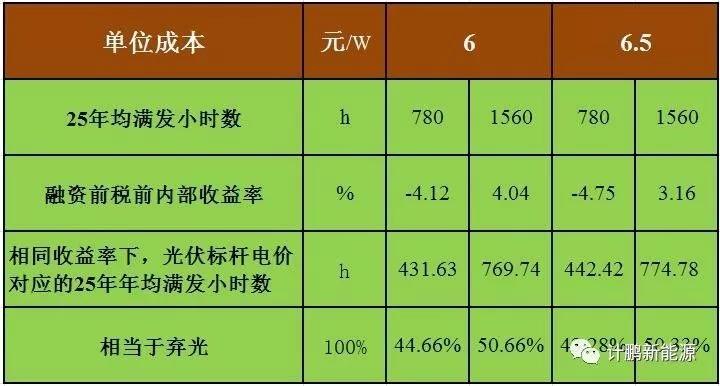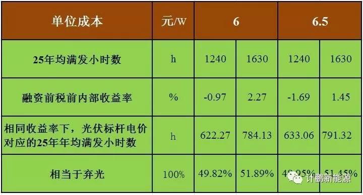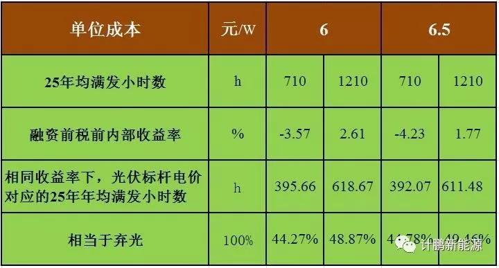 按照測(cè)算的造價(jià)水平,以脫硫燃煤標(biāo)桿上網(wǎng)電價(jià)上網(wǎng),相當(dāng)于棄光48%以上,見(jiàn)下表: