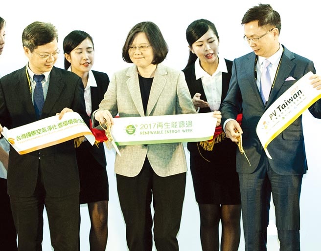 蔡英文10月18日出席2017年“臺(tái)灣國(guó)際太陽(yáng)光電展”、“臺(tái)灣國(guó)際綠色產(chǎn)業(yè)展”及“臺(tái)灣國(guó)際空氣凈化暨環(huán)境衛(wèi)生展”聯(lián)合開(kāi)幕典禮。她表示,這3個(gè)展覽一起舉辦,可以完整呈現(xiàn)臺(tái)灣廠商在綠能、能源管理,以及循環(huán)經(jīng)濟(jì)領(lǐng)域,涵蓋上中下游創(chuàng)新和應(yīng)用能力。