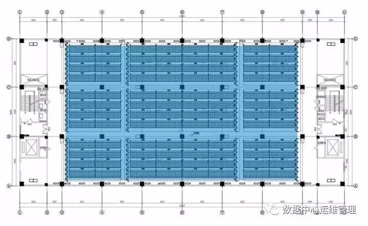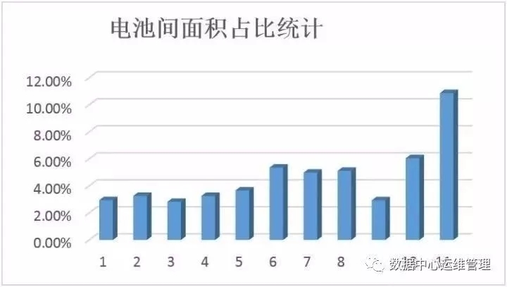 目前規(guī)劃設(shè)計(jì)的大型數(shù)據(jù)中心電池間面積,據(jù)不完全統(tǒng)計(jì), 約占總建筑面積的3%~10%,因大型數(shù)據(jù)中心建筑面積較大,所以絕對(duì)數(shù)量不少。對(duì)于越來(lái)越多的大型數(shù)據(jù)中心項(xiàng)目而言,機(jī)房面積可以說(shuō)是寸土寸金,客戶(hù)希望最大化的提高機(jī)柜數(shù)量,基礎(chǔ)設(shè)施的占地盡量小。下圖為某大型數(shù)據(jù)中心案例的電池間布置,占據(jù)了一整層的面積。在這里我們不著重探討電池間的布置方案,僅從電池間面積的絕對(duì)數(shù)量及與總建筑面積之比,就可以感受到UPS蓄電池系統(tǒng)對(duì)數(shù)據(jù)中心工藝平面規(guī)劃設(shè)計(jì)的重要影響。