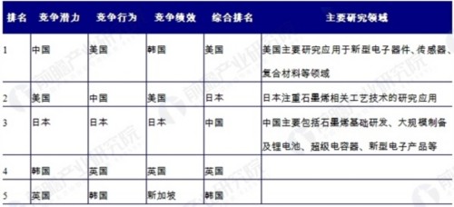 全球石墨烯產(chǎn)業(yè)國(guó)家競(jìng)爭(zhēng)力排名