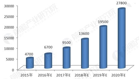 2015-2020年全球石墨烯前景及預(yù)測(cè)(單位:億美元)