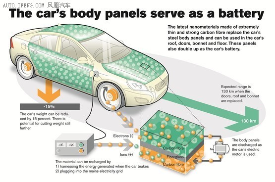 沃爾沃所參與開發(fā)的新材料由碳纖維、聚合樹脂以及納米結構電池組成。該材料的使用,可使車身和車內零部件成為儲電設備。