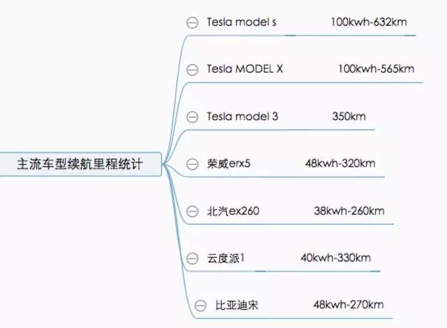 圖1 主流車型最大續(xù)航里程統(tǒng)計