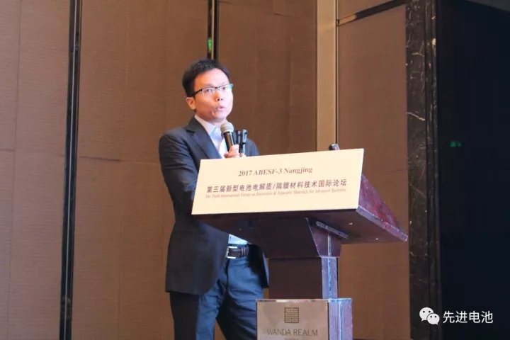 中國儲能網(wǎng)訊:2017年10月18日-19日,由中國化學(xué)與物理電源行業(yè)協(xié)會,中國電子科技集團公司第十八研究所共同主辦,北京中涂國際會展有限公司承辦,上海恩捷新材料科技股份有限公司、深圳市新嘉拓自動化技術(shù)有限公司、廣州紅運機械冠名的兩年一屆的 “第三屆新型電池電解質(zhì)/隔膜材料技術(shù)國際論壇”(ABESF-3)在南京舉行。在“下一代鋰離子電池電解質(zhì)研究進(jìn)展”分論壇上,來自美國萬向A一二三股份公司許夢清博士做了“Development of Advanced Electrolytes for Low Voltage and High Energy Lithium-ion Batteries”的主題發(fā)言。