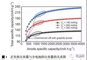 模擬計算表明, 在當(dāng)前商用正極材料基礎(chǔ)上,在1200 mA?h?g?1以內(nèi)提升負(fù)極材料的比容量對提高整個電池的能量密度仍然有較大貢獻(xiàn), 如圖1所示. 故而,為提升鋰離子電池能量密度, 除提升正極材料的比容量和工作電壓以外, 開發(fā)高比容量負(fù)極材料成為關(guān)鍵.